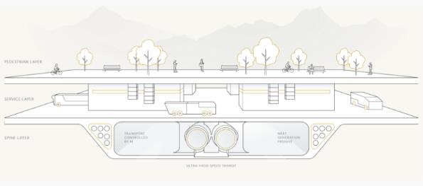 這座城市綿延約170公里,整體將與大自然融為一體。地下一層是行人專區(qū),另外兩層則用于基礎(chǔ)設(shè)施和公共交通建設(shè)。雖然沒有私家車,但是無論生活、工作還是娛樂,步行的話都能夠在五分鐘內(nèi)到達(dá)。即使乘坐公共交通,日常通勤時(shí)間也不會(huì)高于20分鐘后。